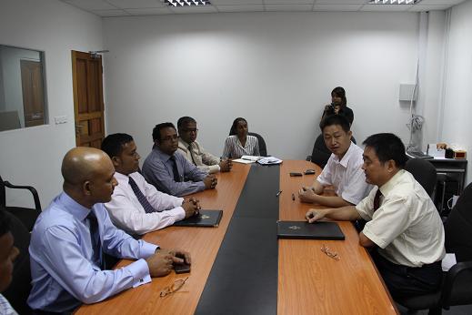 在馬期間,胡董事長一行與馬爾代夫住房、運輸和環境部副部長候賽因先生就住房項目進行了深入的溝通和洽談,并達成了共識。考察團還與2家當地建筑承包商進行了洽談,了解建筑市場以及當地建筑方面的法律、稅收、價格等情況,并經馬爾代夫駐中國大使阿哈邁德.拉帝夫介紹,與馬爾代夫奧林匹克主席就承攬該中心項目進行了談判。期間,考察團深入HULHUMALE島實地考察了住宅現場以及該島港口,同時還奔赴THULUSDHOO島考察了住房市場以及已建同類住房項目實施情況,并對當地的人工費用、“三材”價格等進行了詢價。