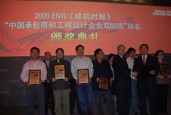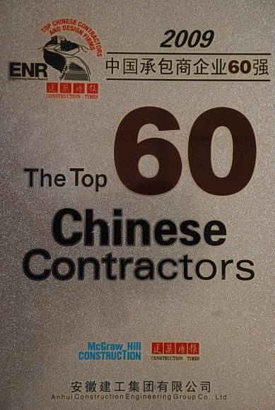 2009年11月5日,第六屆ENR/《建筑時報》中國承包商和工程設計企業“雙60強”頒獎典禮在重慶隆重召開。會上再傳喜訊:安徽建工集團再度榮登中國承包商60強,排名第32位,比2008年上升6位,這是安徽建工繼榮獲“中國企業500強”“全球最大國際承包商225強”之后的又一項榮譽。