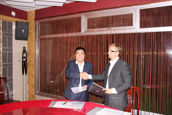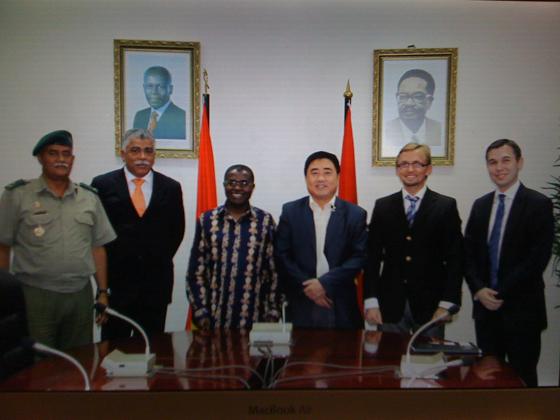 11月21日,中國駐安哥拉大使張伯倫先生設宴宴請了考察團一行。胡董事長一行還分別與在安哥拉合作的三家公司進行了業務洽談,并先后與JHS公司以及Solida投資公司簽訂了3900萬美元的承包工程合同