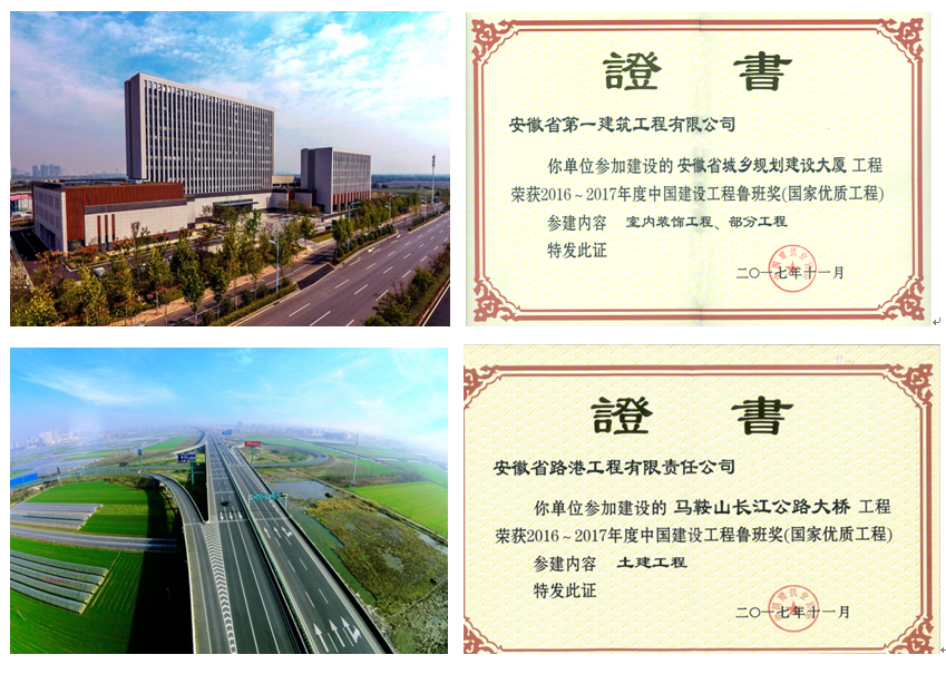 As the leading construction enterprise in Anhui Province and one of Chinese Top 500 enterprise, ACEG always adheres to the strategy of quality and technology first, the Luban spirit of striving for excellence, the concept of creating quality project to customer’s satisfaction and strengthens the brand consciousness and craftsmanship spirit. ACEG implements ISO 9001 Quality System and Criteria for Performance Excellence and carries out the quality problem tackling campaign. ACEG practices the target and responsibility administration and focuses on the elements of market, contract, rule, system, standard, elaboration and information. ACEG has acquired a large number of Luban Prizes, Zhantianyou Prizes, national quality project awards, national municipality project awards, national installation project awards, Dayu Prizes(water conservancy project), road transportation project awards, waterway transportation project awards, Huangshan Prizes(provincial prize), Jiangong Prize (ACEG prize), which all witnessed ACEG’s growth and prosperity.
