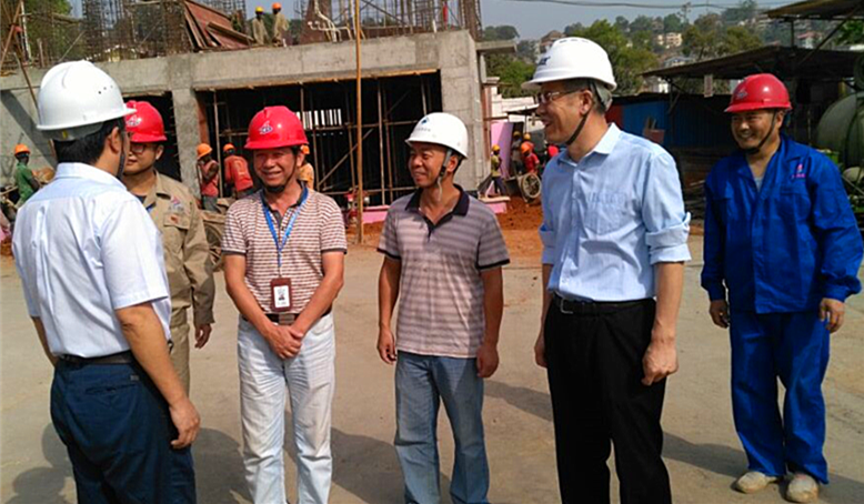 Mr. Wang Yuanlong, Project Manager, is reporting the works to
