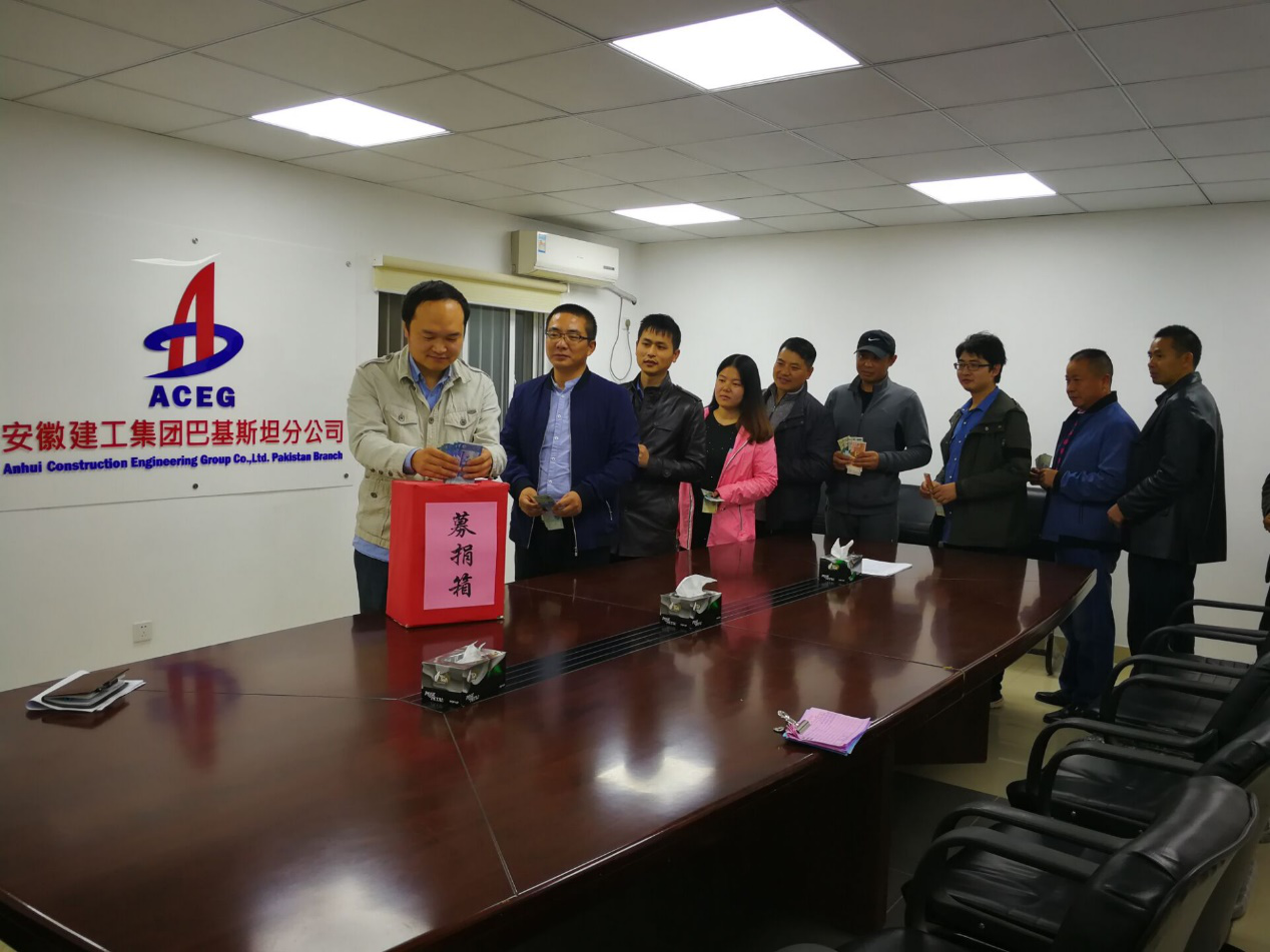 A total of 353,000 rupees has been received, among which 300,000 rupees were from the Branch and 53,000 rupees from the staff of the branch, this sum has been transferred through the Association of Chinese Enterprises in Pakistan.
