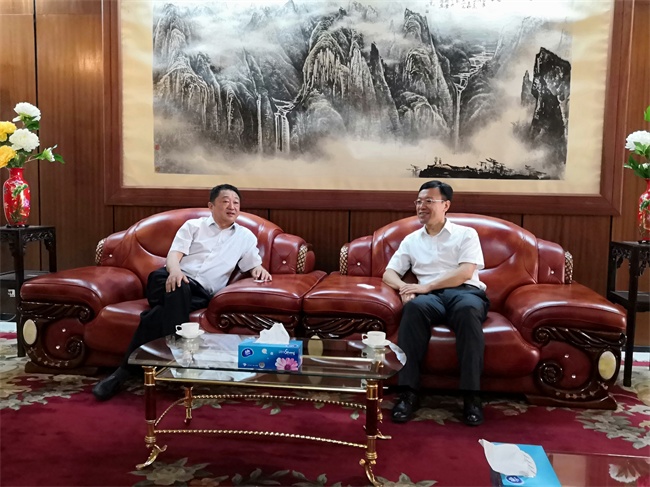Mr. Chen Xiuxiang is meeting with H.E. Mr. Li Xuda, Cultural Counselor of Chinese Embassy and Director of Chinese Cultural Center in Nigeria